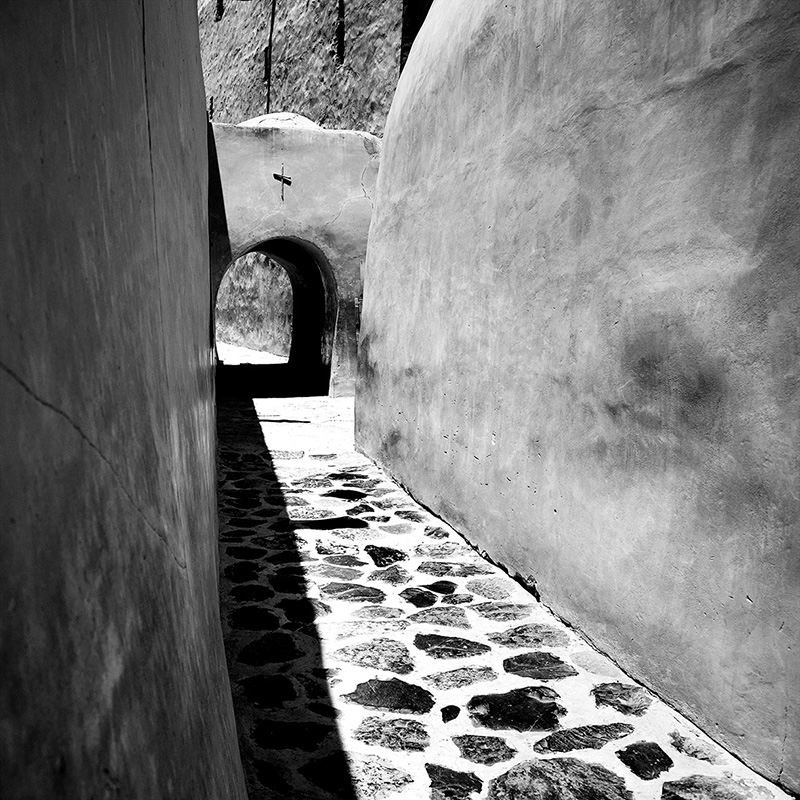 Drawing inspiration from Erwin Panofsky’s theory, particularly his concepts of iconography and iconology, Hafez’s work transcends mere representation to delve into the deeper meanings and cultural contexts embedded within these sacred spaces. Hafez’s work challenges these mediated representations by presenting the raw, contemplative essence of Coptic Monasticism in stark monochrome.